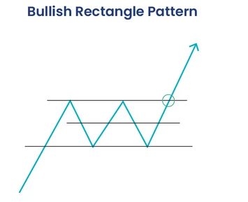 نمودار شماتیک الگوی مستطیل صعودی (Bullish Rectangle Pattern) که فاز تثبیت قیمت را نشان می‌دهد و جهت ادامه روند پس از شکست.