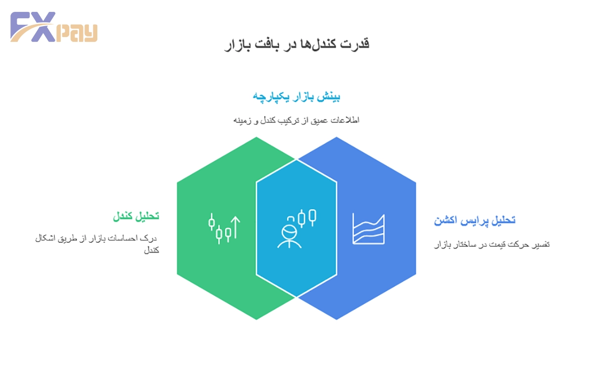 این‌که قیمت با قدرت بالا رفته یا با تردید، این‌که در انتهای حرکت متوقف شده یا با اطمینان بسته شده، همه در کندل‌ها قابل دیدن است.