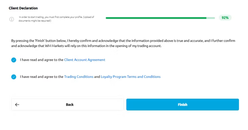 - با تیک زدن این گزینه، اعلام میکنید که قوانین و سیاستهای WM Markets را مطالعه کرده و میپذیرید.