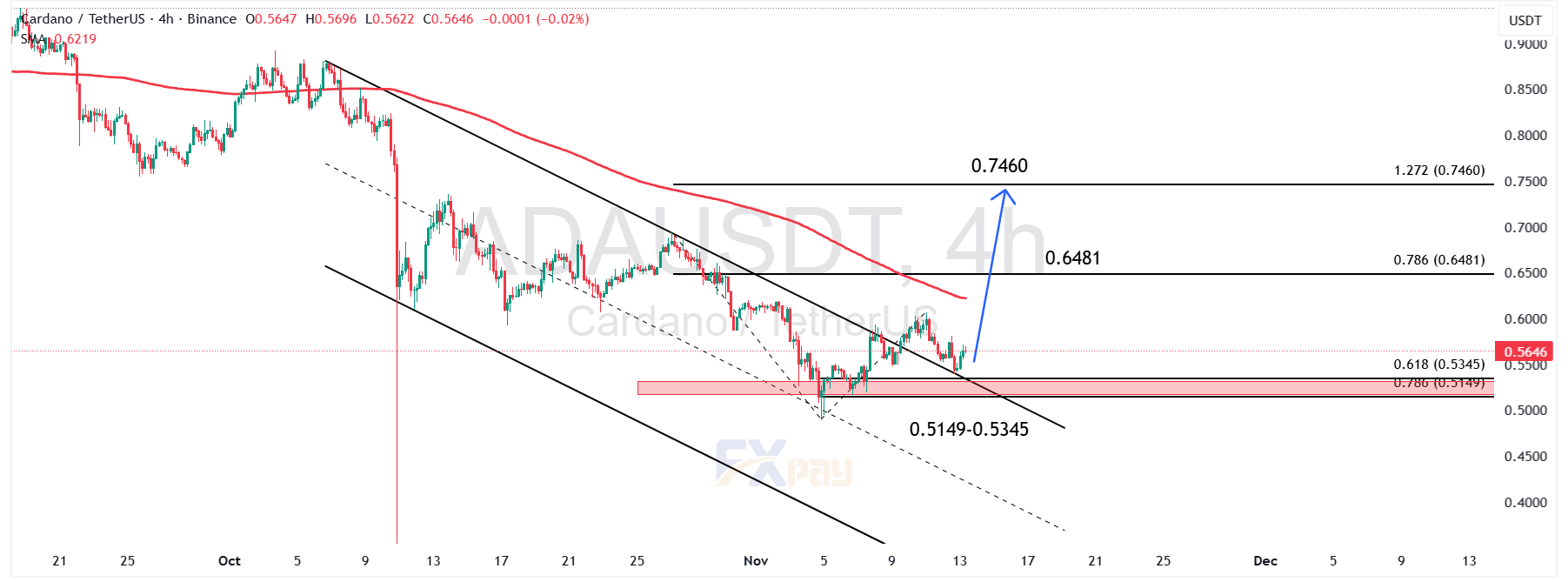 نمودار ADAUSDT در تایم‌فریم ۴ ساعته