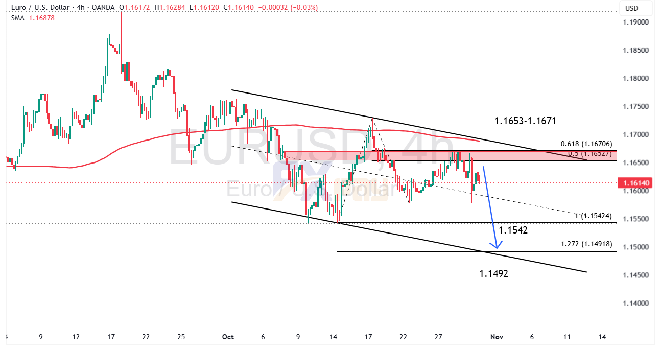 ترکیب ضعف دادههای اقتصادی اروپا، کاهش تورم، و سیاستهای محتاطانهی فدرال رزرو آمریکا، محیطی را ایجاد کرده که در آن یورو/دلار آمریکا احتمالا در مسیر نزولی باقی میماند. محدودهی مقاومتی ۱/۱۶۵۳ تا ۱/۱۶۷۱ دلار عملاً نقطهی تعیینکنندهی جهت حرکتی در کوتاهمدت است. تا زمانیکه قیمت زیر این محدوده قرار دارد، احتمال افت تا سطحهای ۱/۱۵۴۲ دلار و ۱/۱۴۹۲ دلار بسیار بالاست.