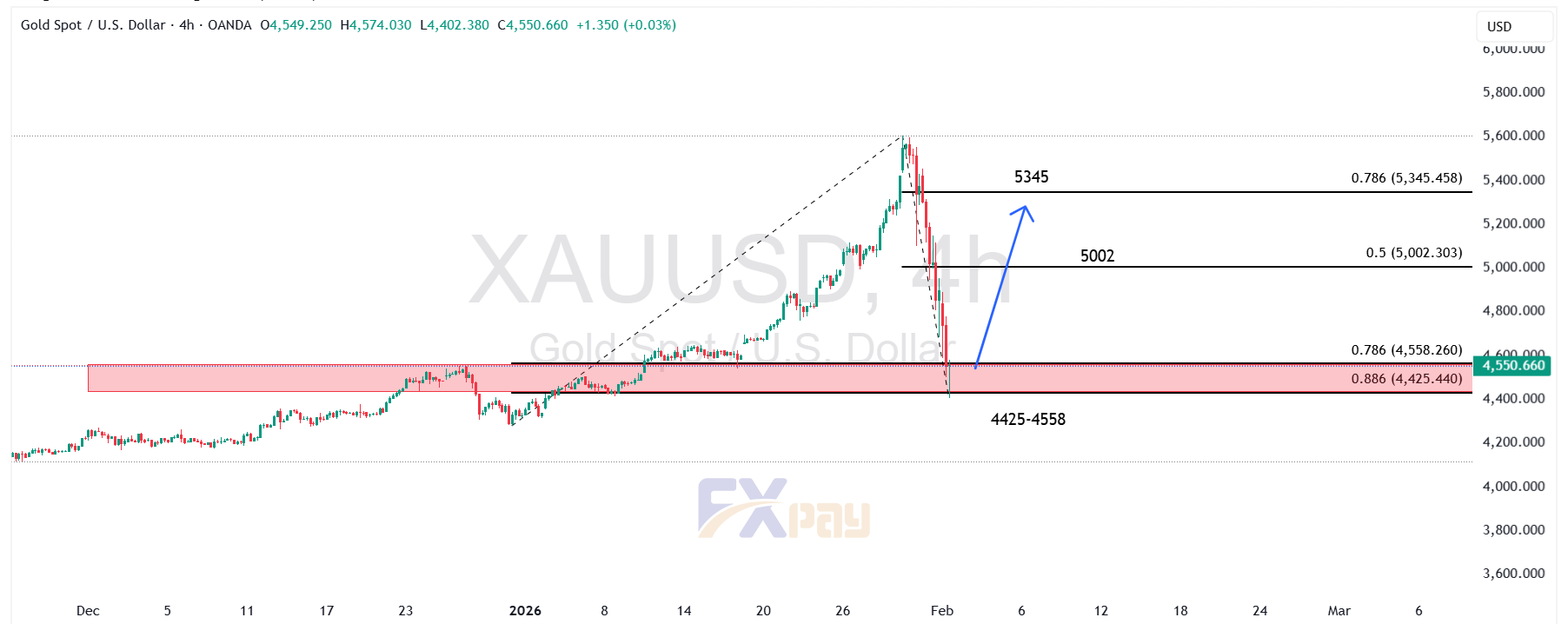 اونس طلا در حال حاضر در حال پاکسازی “خریداران ضعیف” و جستجو برای ارزش واقعی است. از نظر تکنیکالی، قیمت روی حمایت مستحکم ۴,۴۲۵-۴,۵۵۸ دلار قرار دارد که منطبق با ترازهای فیبوناچی بلندمدت است.