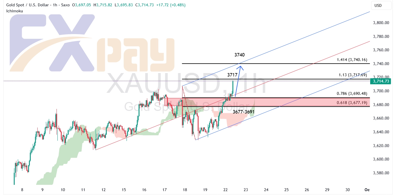 مطابق چارت بهروز، قیمت پس از تثبیت بالای حمایت ۳,۶۷۷ – ۳,۶۹۱ دلار، مجدداً وارد کانال صعودی شد و اکنون در محدوده ۳,۷۰۶ دلار معامله میشود. عبور قدرتمند از تراز بازگشتی فیبوناچی ۰/۷۸۶ در ۳,۶۹۰ دلار و حرکت به سمت مقاومتهای بالاتر، احتمال ثبت رکورد جدید تا ۳,۷۴۰ دلار را تقویت کرده است.