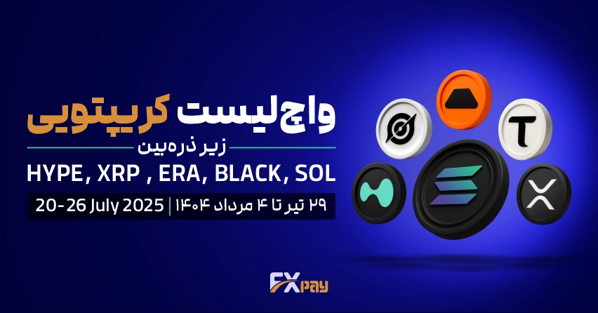 در واچلیست هفتگی ارزهای دیجیتال FxPay برای بازه ۲۹ تیر تا ۴ مرداد ۱۴۰۴ (۲۰ تا ۲۶ جولای ۲۰۲۵)، مجموعهای از مهمترین فرصتهای فاندامنتال و تکنیکال بازار بررسی شده است. در این هفته، جهش غیرمتمرکز هایپرلیکوئید (Hyperliquid) در حجم معاملات، ابهامات پرونده ریپل (XRP)، ایردراپ بزرگ ارا (ERA)، توکنومیک منحصربهفرد بلکهول (BLACKHOLE)، سرمایهگذاری کلان در تائو (TAO) و رشد مقیاسپذیری سولانا (SOL) شش سیگنال اصلی بازار را شکل دادهاند که در ادامه تحلیل جامع آنها را خواهید خواند.