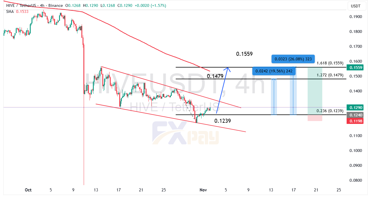 حرکت قیمت در یک کانال نزولی میانمدت و شکست بالقوه آن به سمت بالا، معمولاً سیگنال بازگشتی قدرتمندی محسوب میشود. عبور از سطح ۰/۱۴۷۹ دلار تأییدی بر این سناریوست و احتمال دستیابی به مقاومت ۰/۱۵۵۹ دلار (فیب ۱/۶۱۸) را افزایش میدهد.تا زمانی که قیمت بالاتر از حمایت ۰/۱۲۴ دلار باقی بماند، چشمانداز کوتاهمدت HIVEUSDT صعودی ارزیابی میشود.