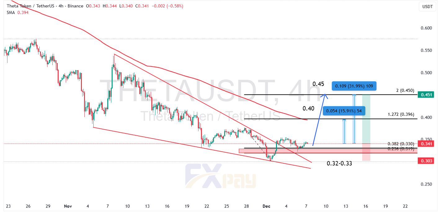 نمودار THETA/USDT در تایم فریم چهار ساعته