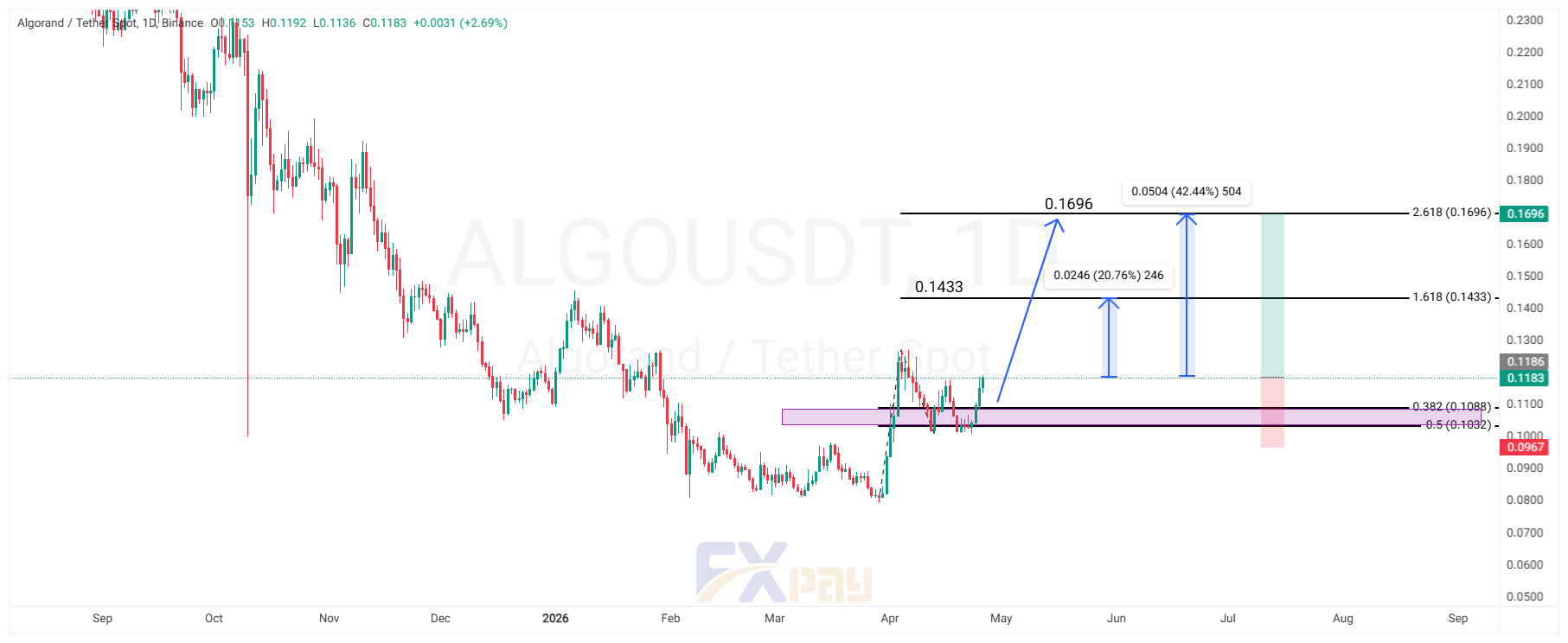 نمودار ارز دیجیتال الگوراند (ALGO/USDT) در تایم فریم روزانه