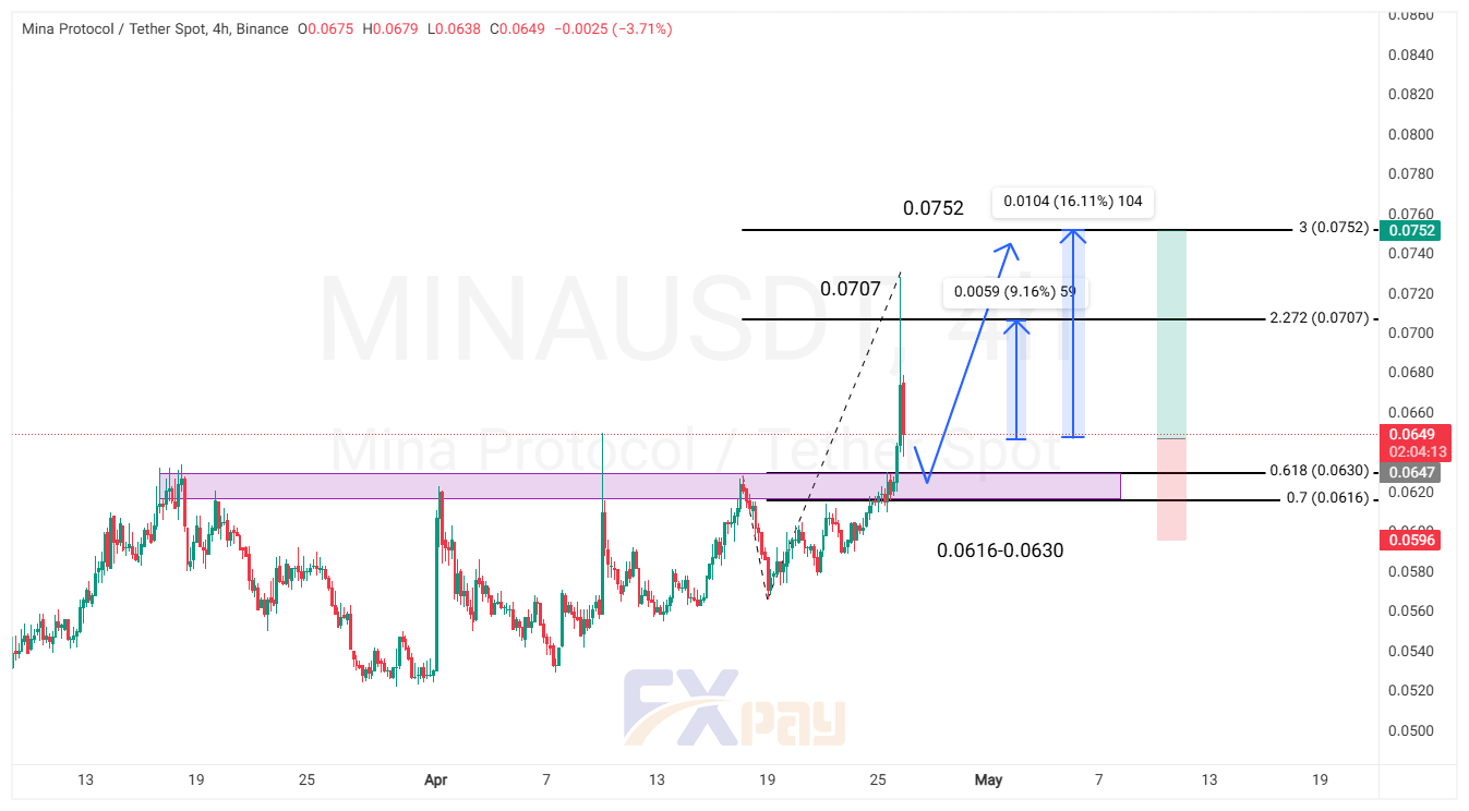 نمودار ارز دیجیتال مینا (MINAUSDT) در تایمفریم ۴ ساعته