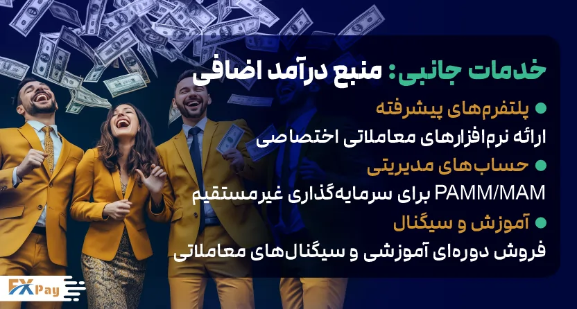 بروکرها علاوه بر درآمدزایی مستقیم از معاملات، میتوانند از خدمات جانبی نیز کسب درآمد کنند: